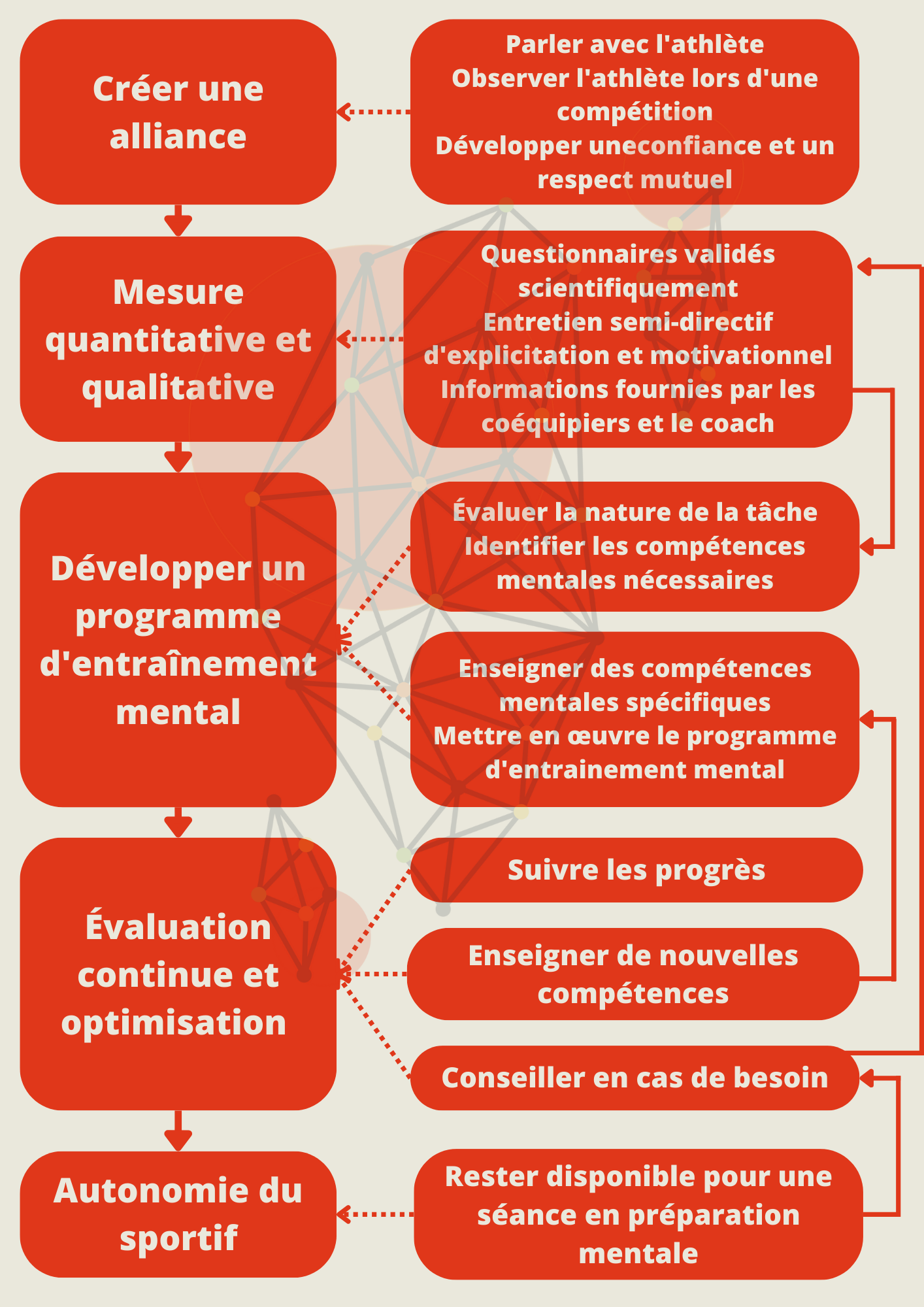 En savoir plusJe me base sur des techniques provenant de la littérature scientifique comme la fixation de buts collective, le travail sur les relations interpersonnelles, l’implication individuelle de chaque membre dans son rôle et l’entrainement en condition de compétition. Ces techniques permettent d’optimiser les habiletés mentales liées au groupe telles que la communication, la relation entraineur / entrainé, la cohésion, le leadership, la clarification des rôles. Le but étant ici d’augmenter la performance du groupe ( LePine et al., 2007 ).
